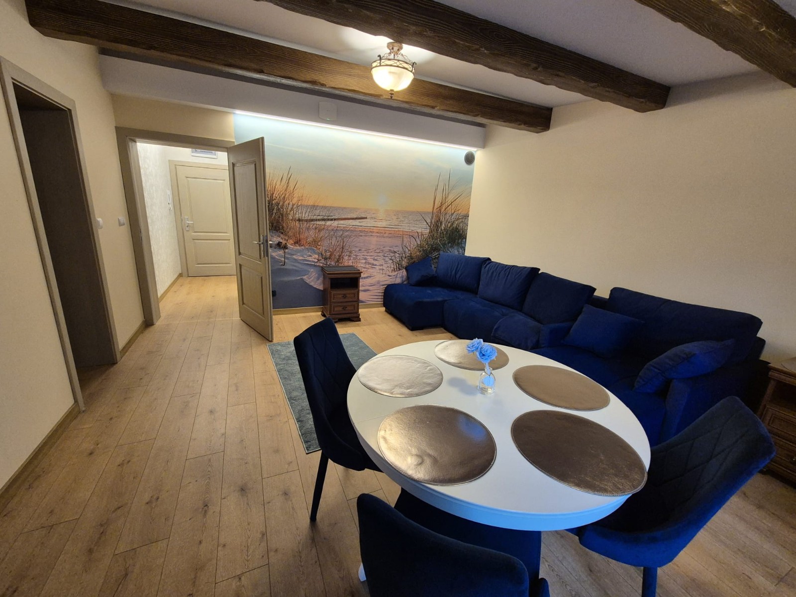 W pełni umeblowany apartament w kamienicy, położony w spokojnej, zielonej okolicy, zaledwie 150 metrów od morza i Parku Brzeźnieńskiego. Lokal oferuje: